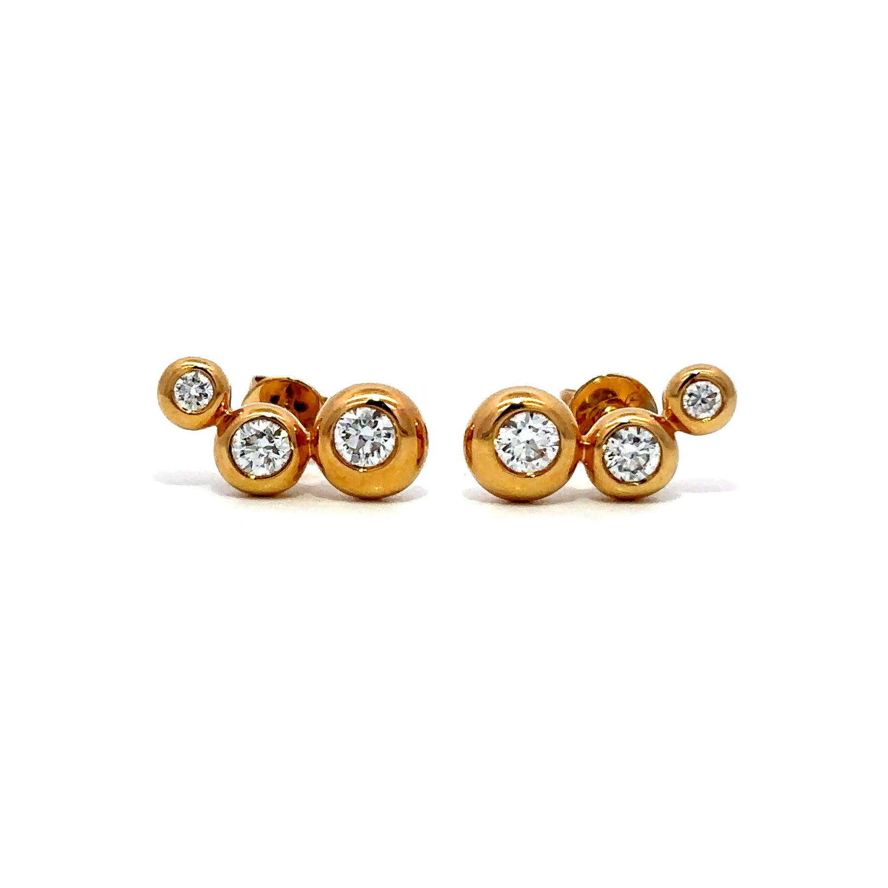 18k Yellow Gold Three Stone Bezel Set climber earrings set with: