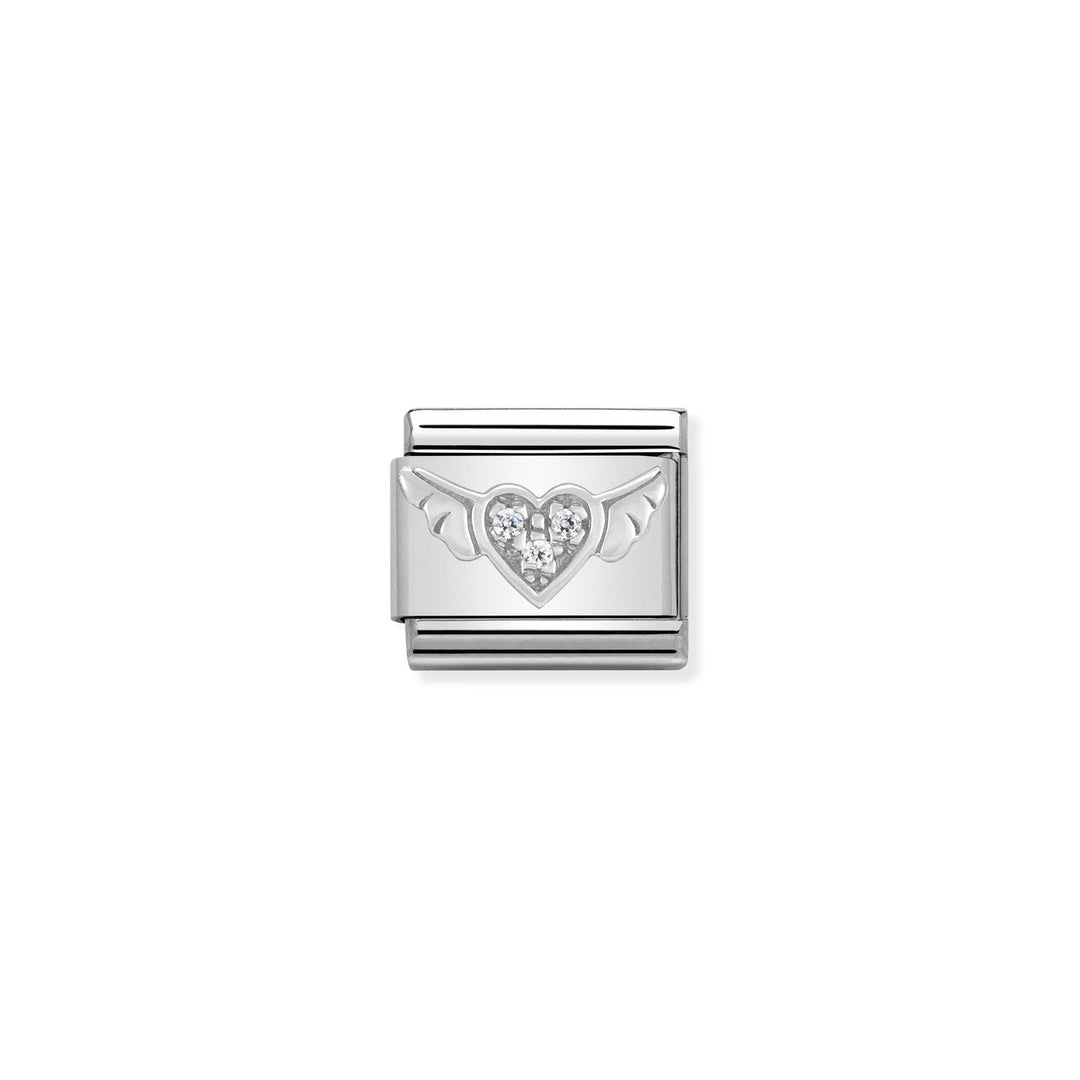 Composable Charm Link - "Flying Heart with CZ" in Stainless Steel with Cubic Zirconia #12649