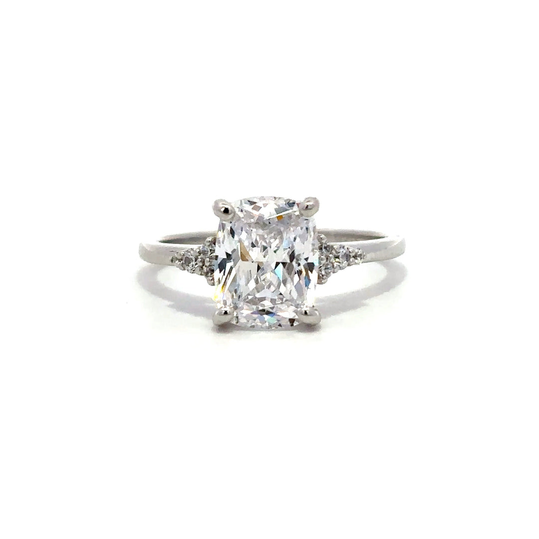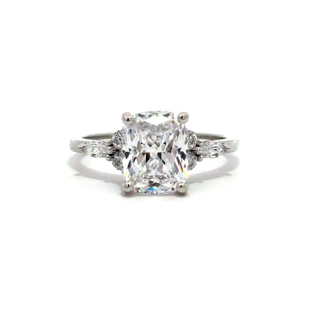 Solitaire Ring (Elongated Cushion) - 14k White Gold 3.05ct #12049