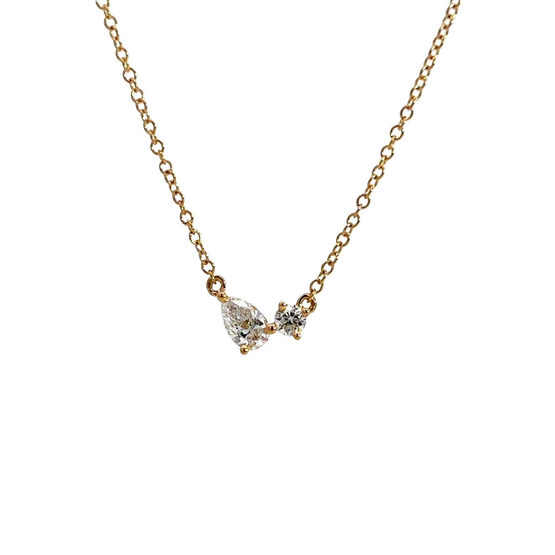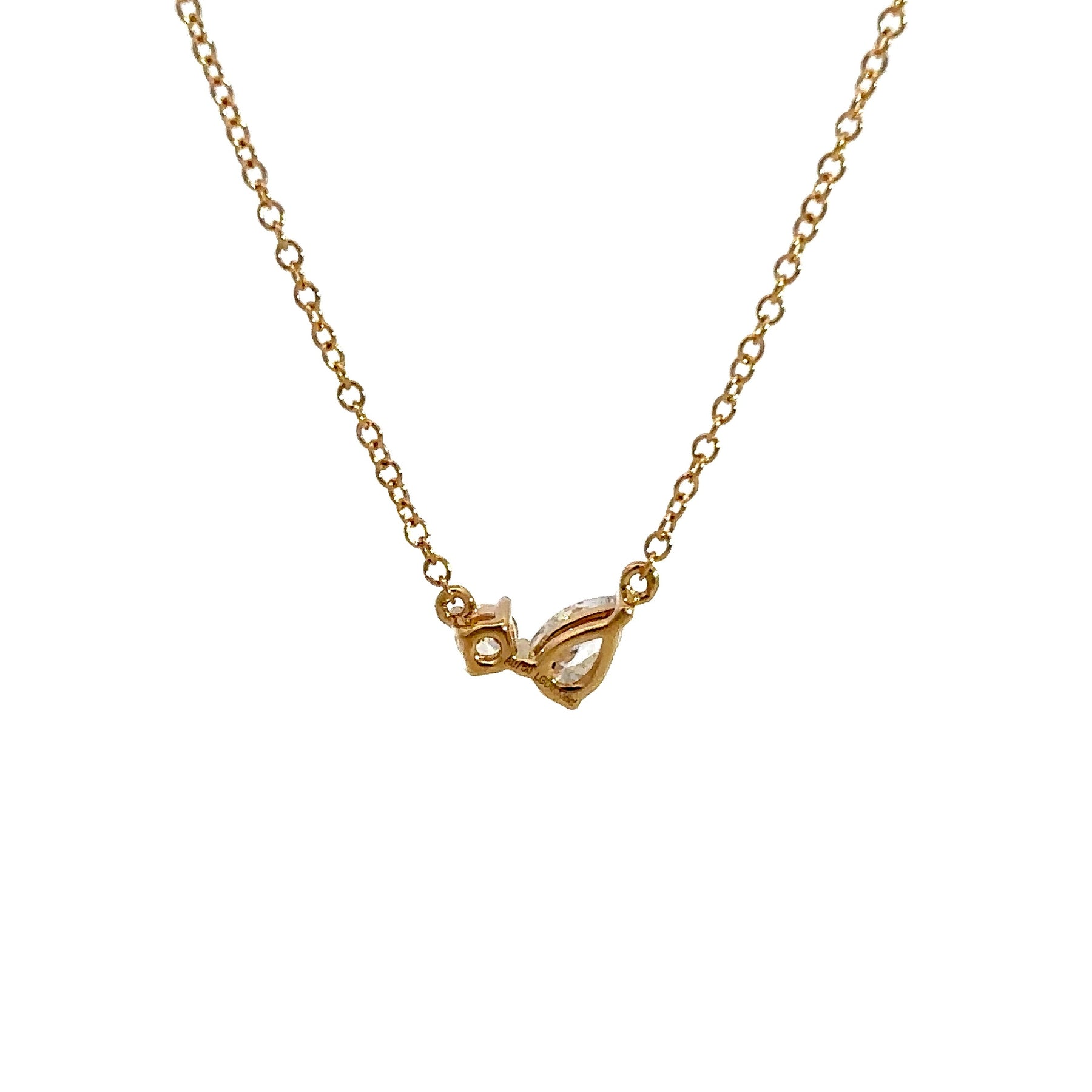 Flourishan Two Stone Necklace (Pear & Round) - 18k Yellow Gold #12913