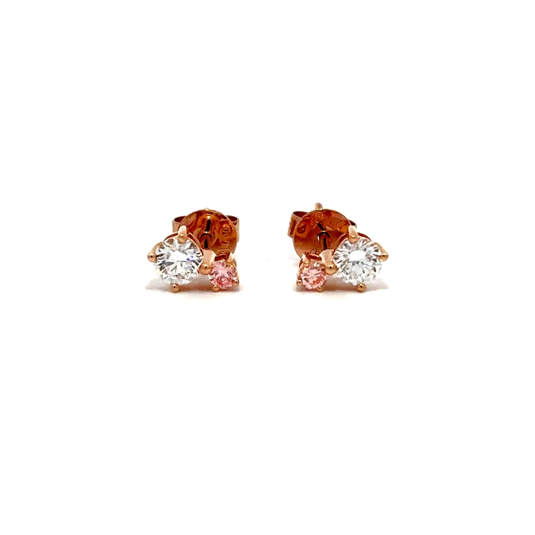 Flourishan Two Stone Stud Earrings (Round) - 18k Rose Gold #12938