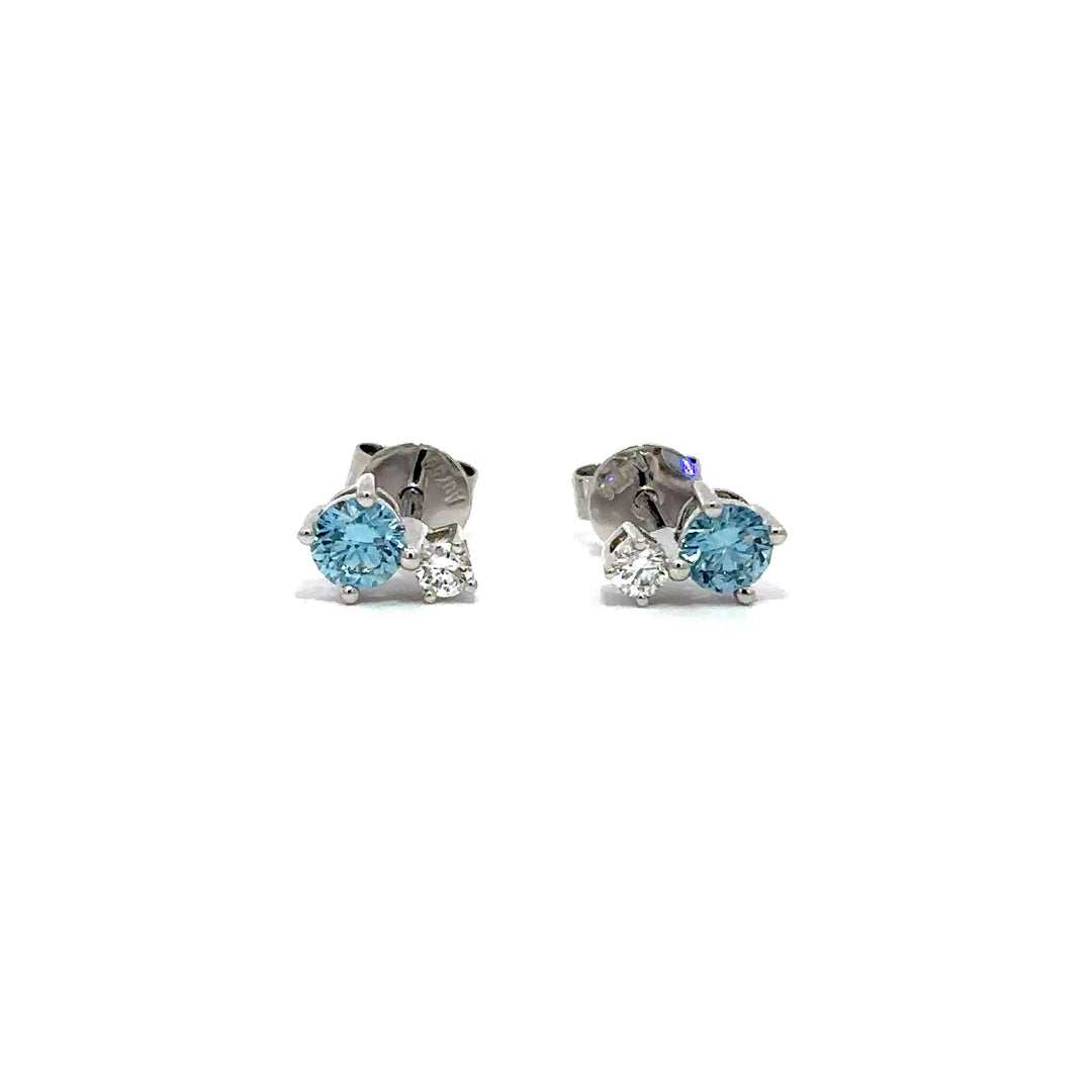 Flourishan Two Stone Stud Earrings (Round) - 18k White Gold #12925