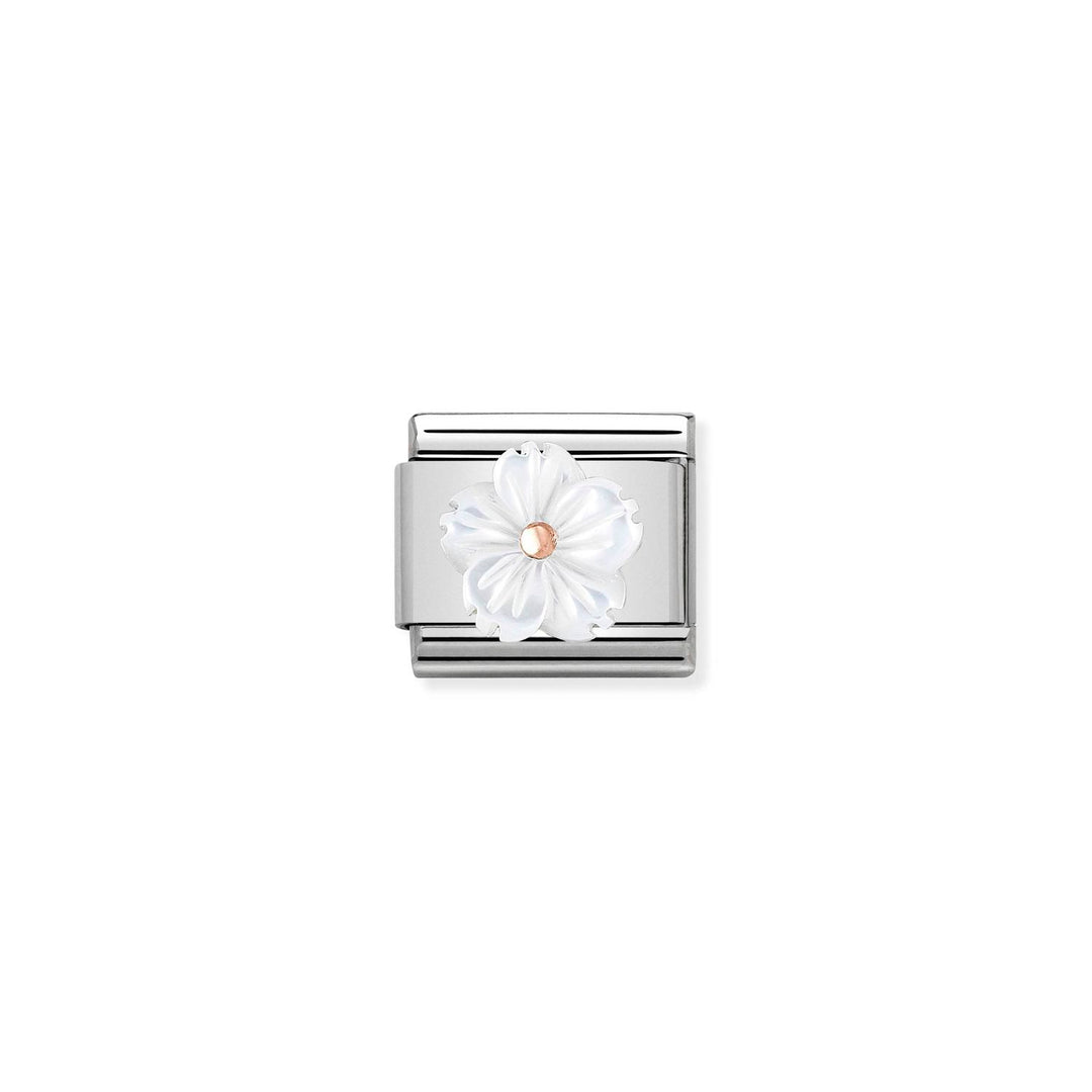 Composable Charm Link - "Flower in White Mother of Pear" with Stainless Steel with 9k Rose Gold #12773