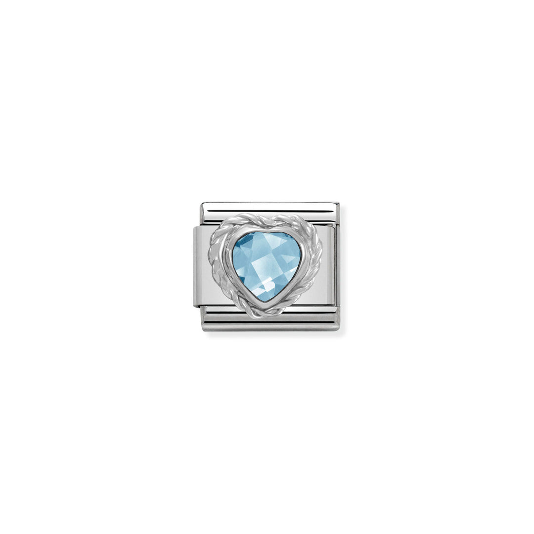 Composable Charm Link - "Light Blue CZ Heart" with Sterling Silver and Cubic Zirconia #12690
