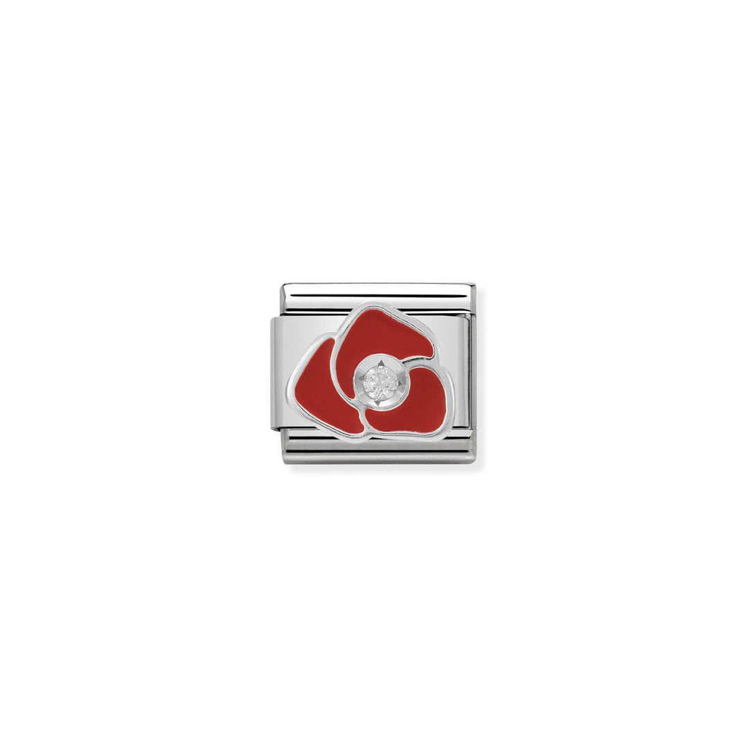 Composable Charm Link - "Red Rose with CZ" in Stainless Steel with Cubic Zirconia #12664
