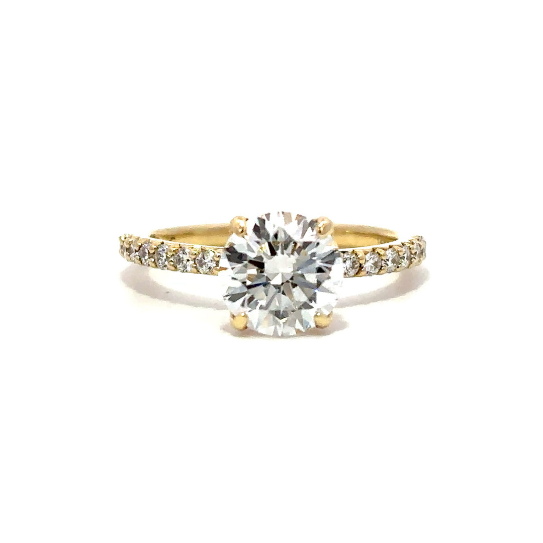 Solitaire Ring (Round) - 14k Yellow Gold with Bridge Diamonds 1.53ct #12152