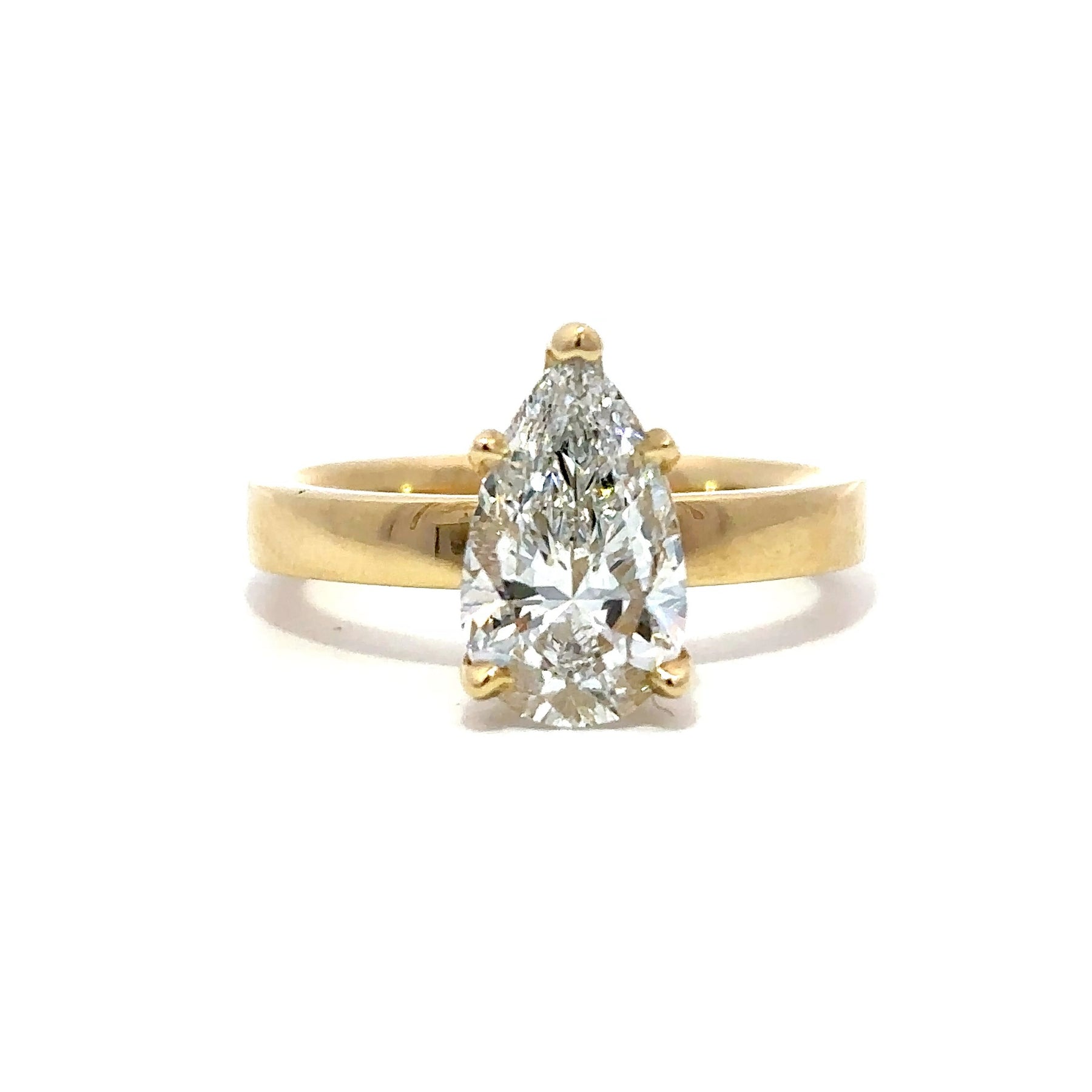 Solitaire Wide Band Ring (Pear) - 14k Yellow Gold 2.00ct #12946