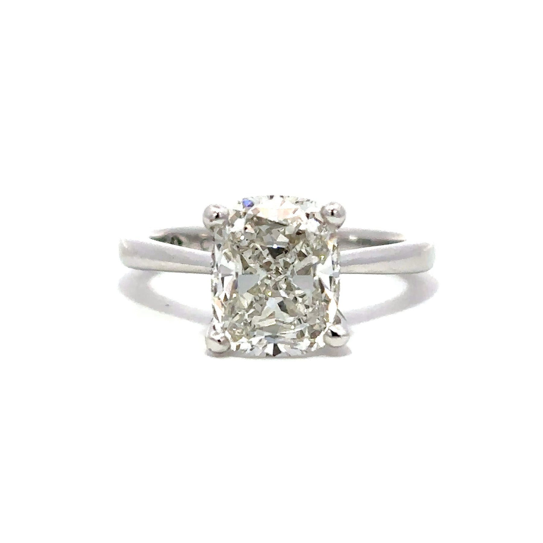 Solitaire Ring (Elongated Cushion) - 14k White Gold 3.05ct #12049